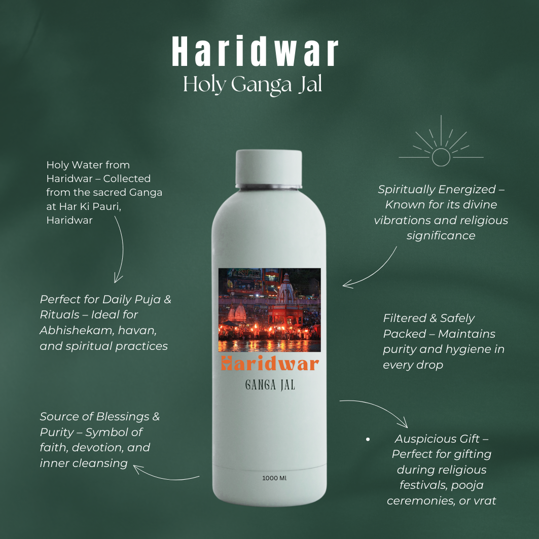 ✅ Holy Water from Haridwar – Collected from the sacred Ganga at Har Ki Pauri, Haridwar