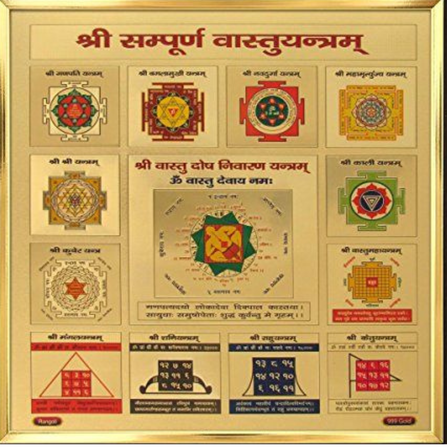 The Shree Sampoorna Vastu Yantra is energized with sacred mantras and geometrical patterns that work on a subtle energy level. It absorbs and neutralizes Vastu imbalances and radiates positive energy, making the surroundings auspicious and vibrant.